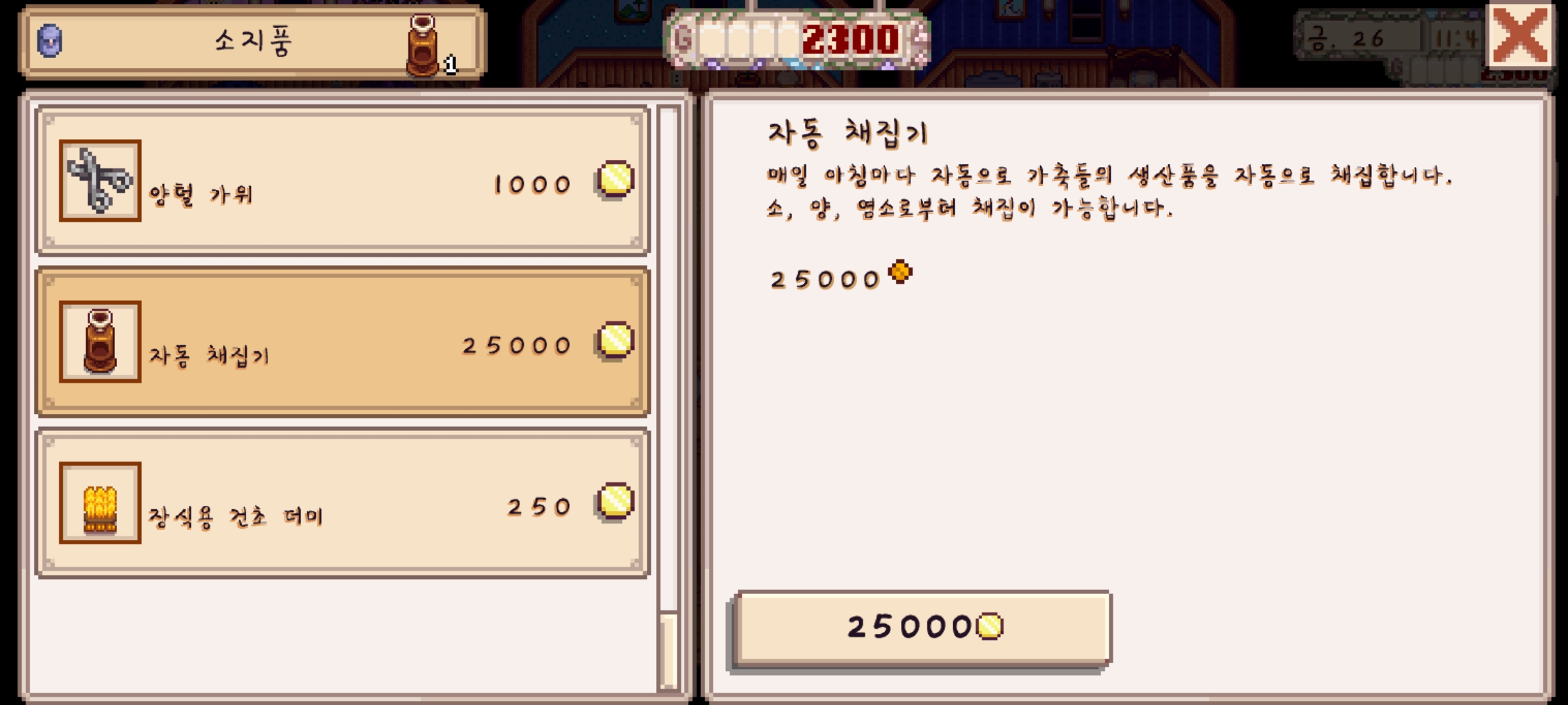 매번 채집하기 귀찮으니까 25,000골드짜리 자동채집기도 설치해주고