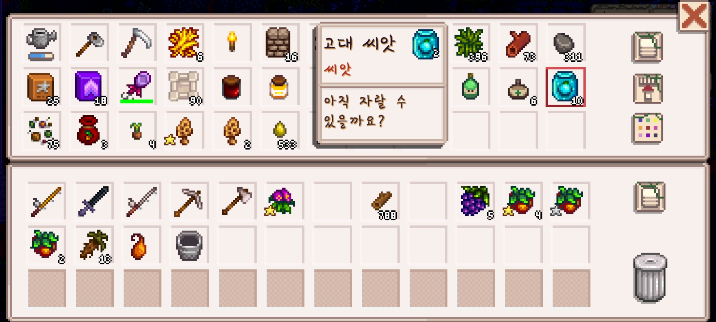 - 고대 씨앗 10개로 불림 (씨앗 채취기)