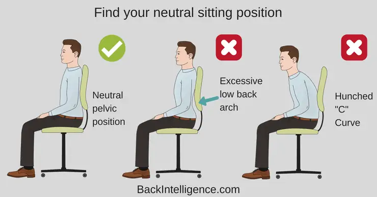 - 허리는 최대한 깊숙이 앉아 엉덩이/허리가 의자 등받이에 밀착하게 붙인다.