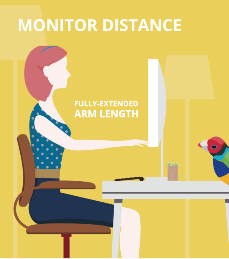 - 기본적으로는 의자에 앉은 자세에서 팔을 뻗쳤을때 모니터가 안 잡히는 게 좋다.