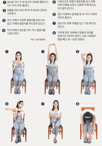 - 앉아만 있지 말고 한 시간에 한 번씩 일어나서 돌아다니자.