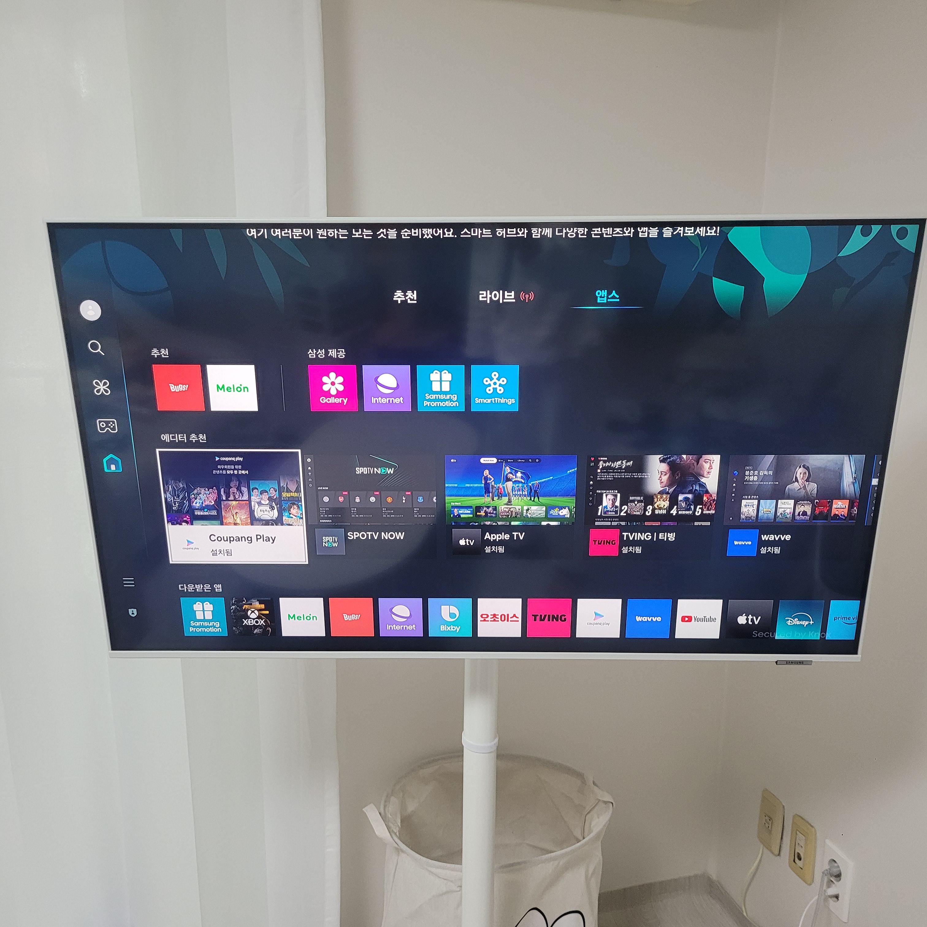 인테리어에도 이쁘고, 스마트티비 기능도 좋고, 실제로 이동하면서 많이 보고 있고 엄청 꿀템이다.