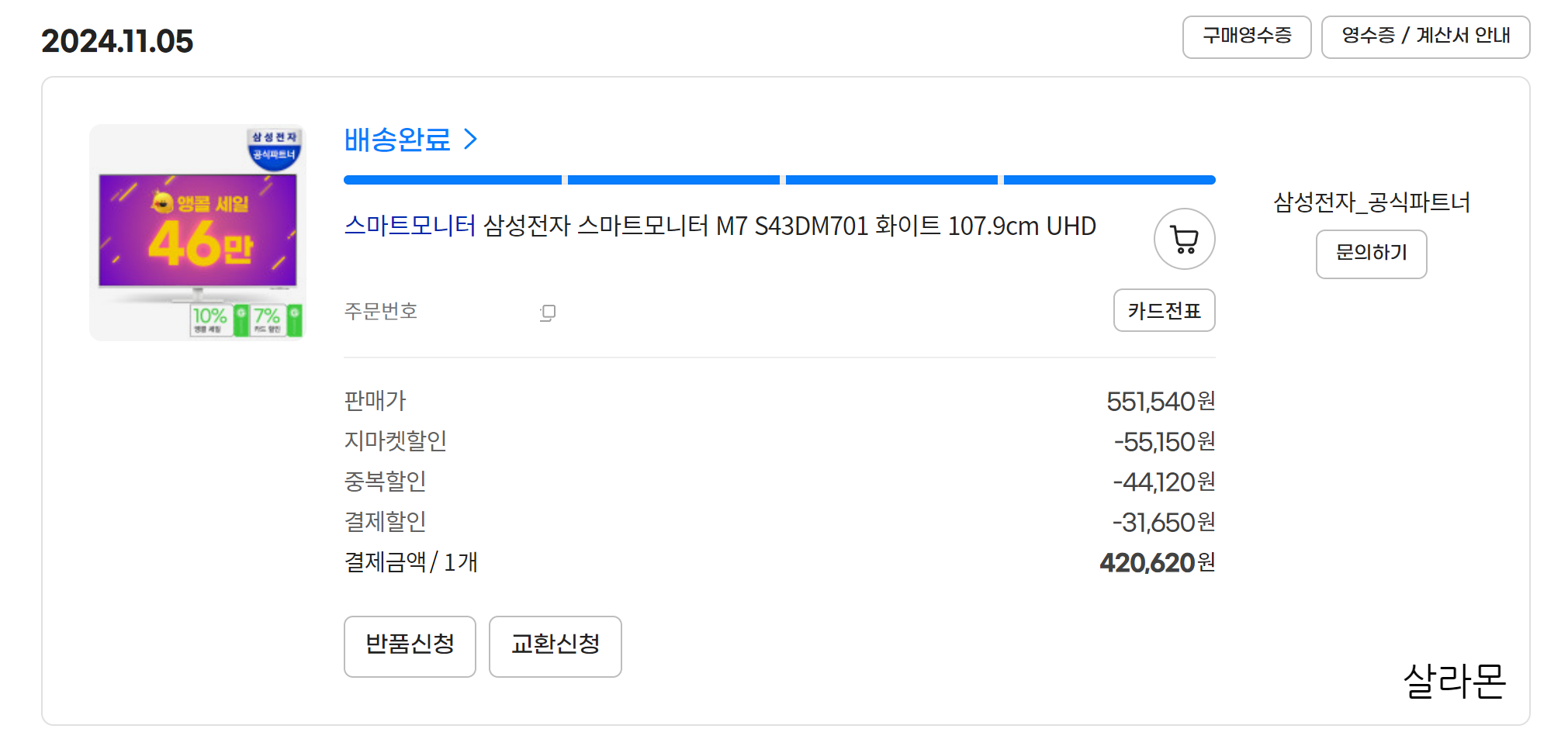 '가전은 무조건 화이트로 사자' 주의라 흰색 M7 43인치와 흰색 카멜마운트 거치대를 샀다.