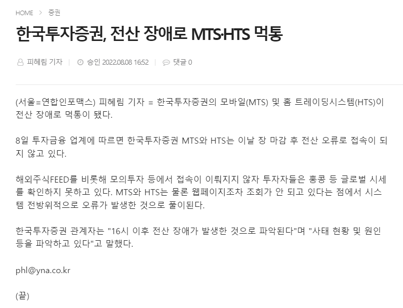 한투는 2022년 전산 오류로 인한 이슈가 있었습니다.