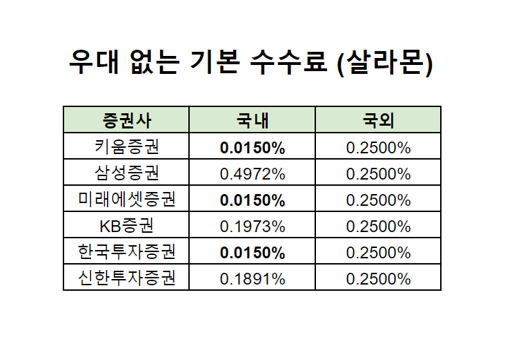 흥미로운 점은, 삼성증권의 경우 일반 국내/국외 수수료가 비싼편이지만