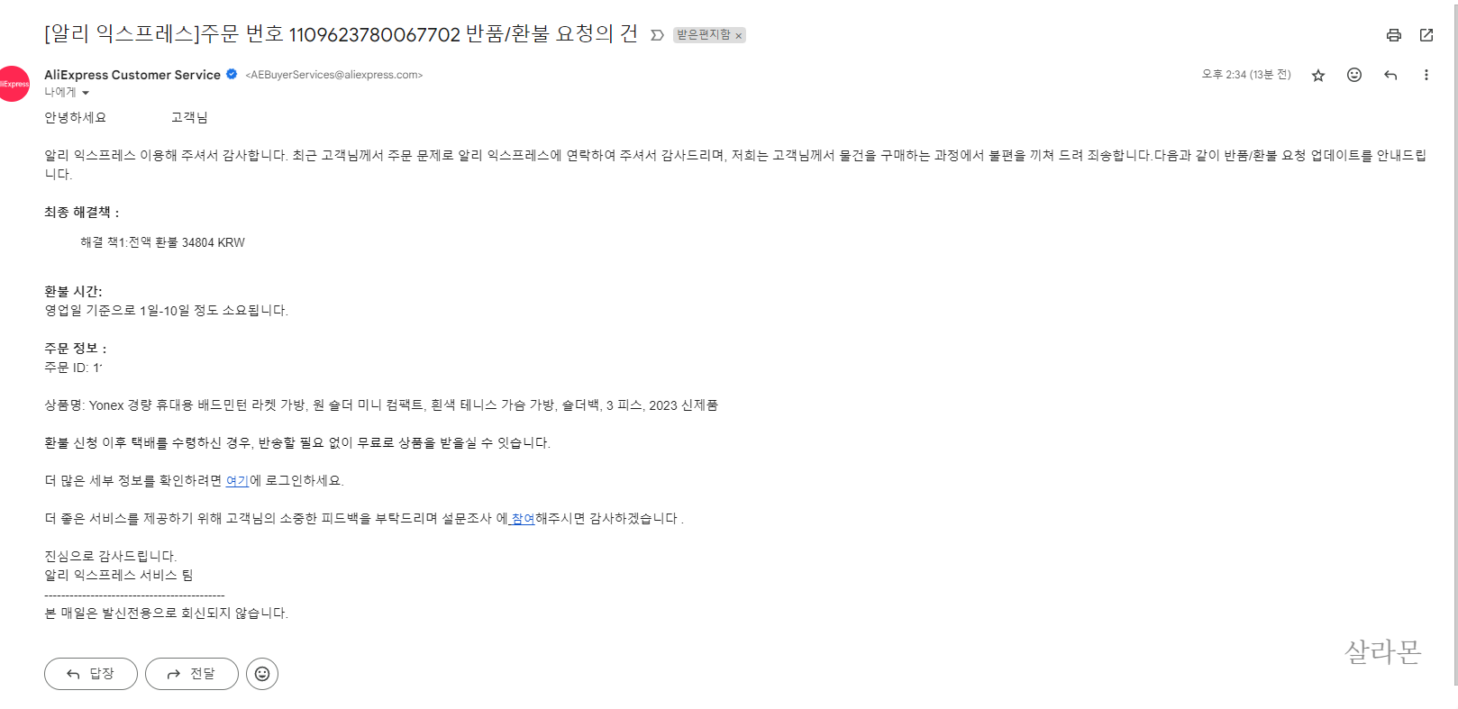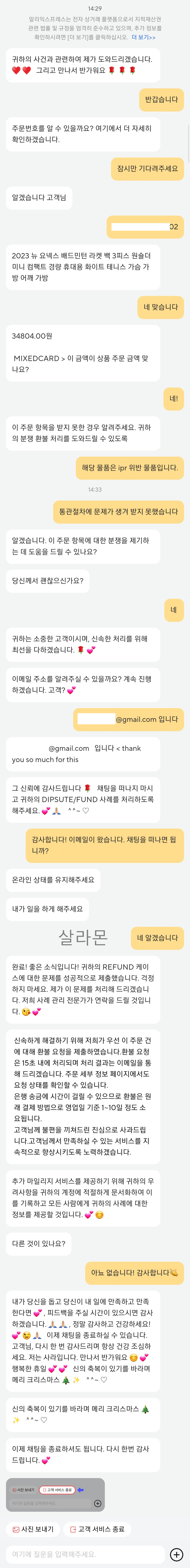 이 글을 보는 누군가가 있다면, 그냥 알리 고객센터로 바로 문의해서 환불하길 추천한다. 엄청 빨리 해결 됨