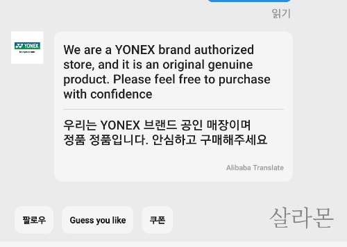 알리 요넥스에서 4천원 정도 더 싸게 팔길래 샀던 게 문제가 된 것 같다.