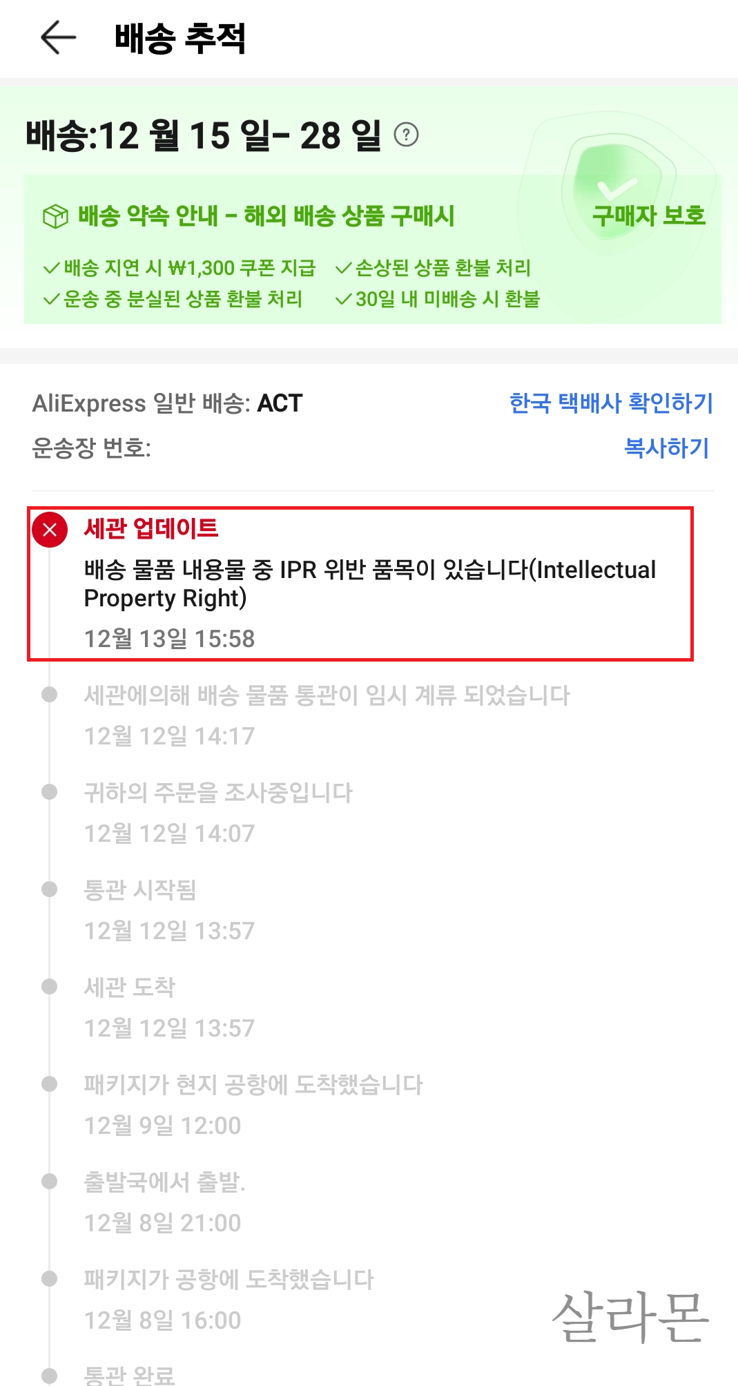 주문한 상품이 IPR 위반 상품으로 유치되거나 폐기 처리되면 알리익스프레스에 환불 신청을 할 수 있다.