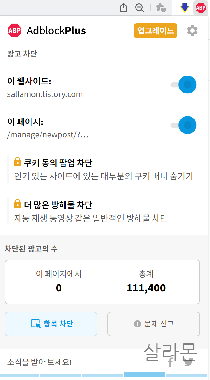 정작 창작자이자 정보공유자가 되어 광고를 설정하고나니 이 애드블록이 내 수익원을 막는 악덕 프로그램으로 느껴진다.