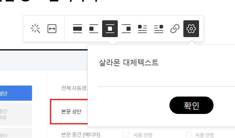 2) 대부분의 이미지에는 ALT코드를 넣어준다. (이미지를 첨부하고 맨 오른쪽 설정버튼 클릭 시 가능)