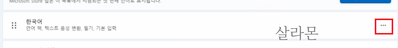 2. 한국어에서 오른쪽 점 세개 클릭 - '언어 옵션' 클릭