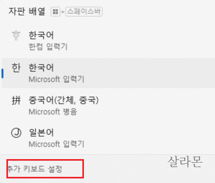 여기서 추가 키보드 설정을 누릅니다.