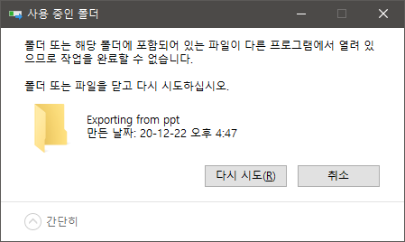 다른 프로그램이 열려있다는 문구는 그렇다 치는데,