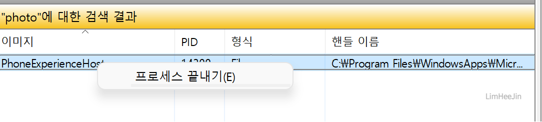 (너무 광범위한 단어를 입력하면 상관없는 프로세스들이 뜰 수 있음)