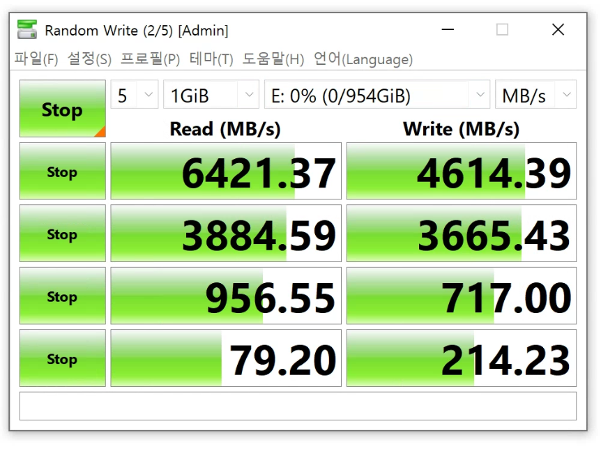 - Crystal Disk Mark : 디스크 읽기/쓰기 성능 확인. 속도 부품 스펙과 비교