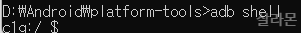 3. 아까 ADB 연결을 마쳤으니, 명령프롬프트에 adb shell을 입력하여 adb 쉘을 열어준다.