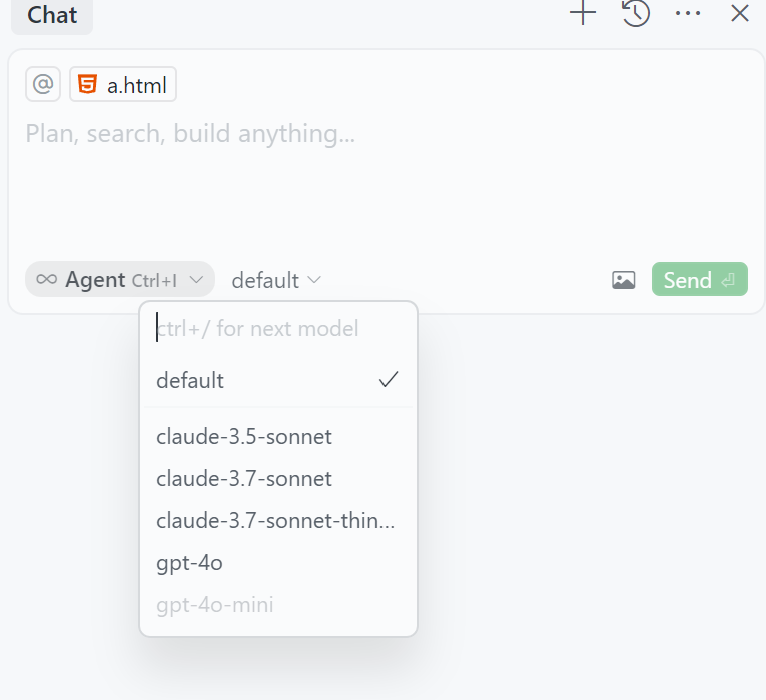 default를 클릭해서 원하는 AI모델을 선택할 수 있고, 모드도 선택할 수 있다.