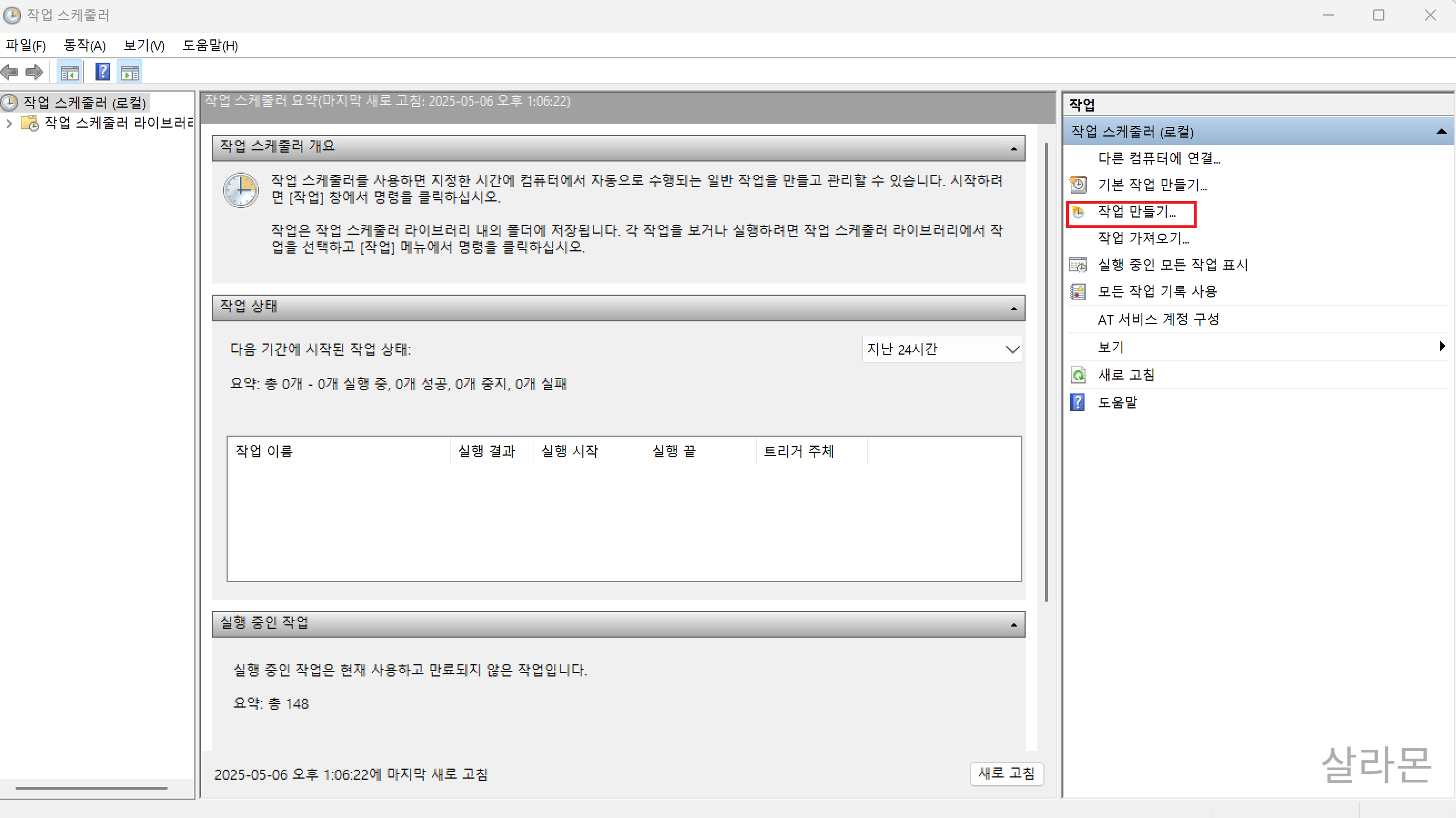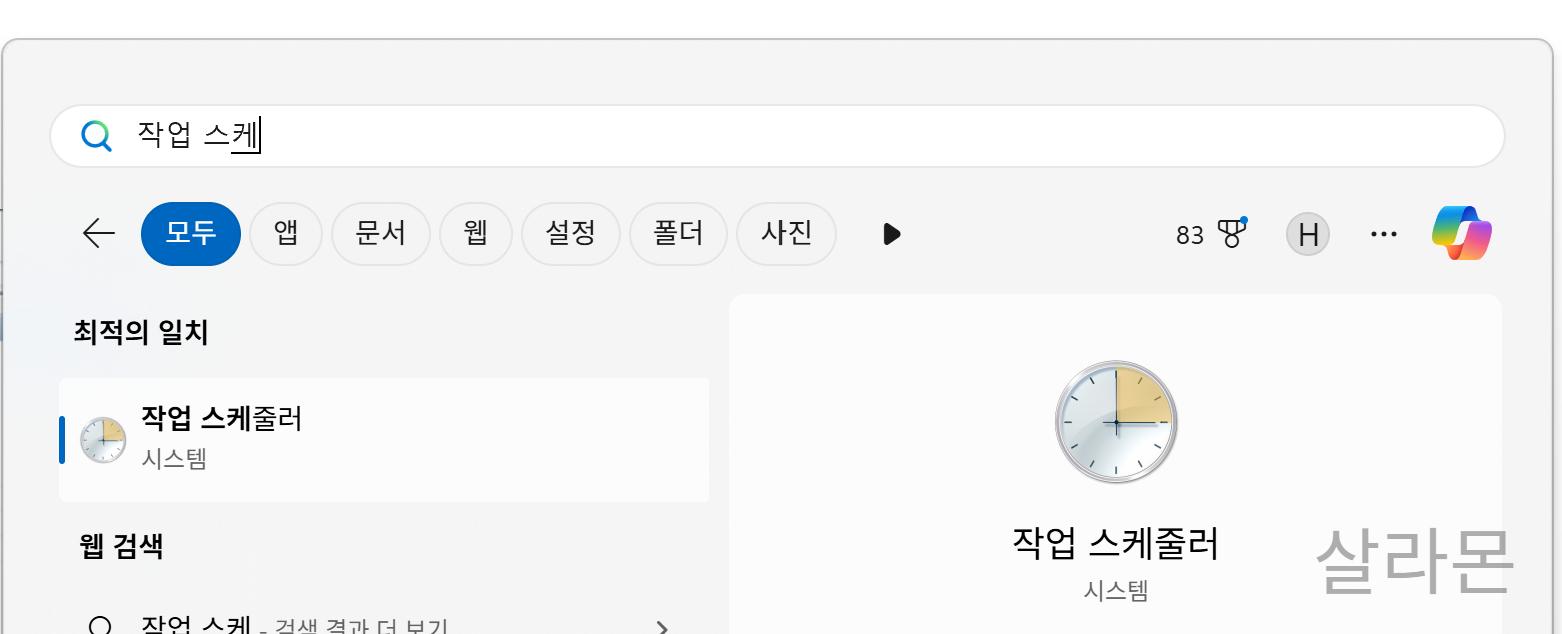 1. 작업 스케줄러를 실행한다. (시작 - 검색을 이용)