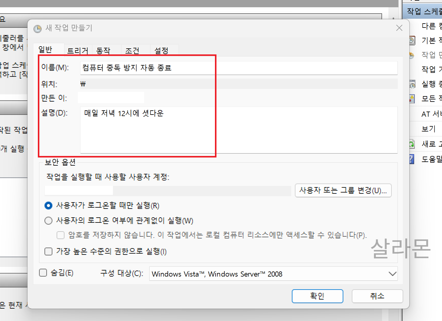 - 저는 강제 종료를 원치는 않았으므로, shutdown /s까지만 적어주었습니다.
