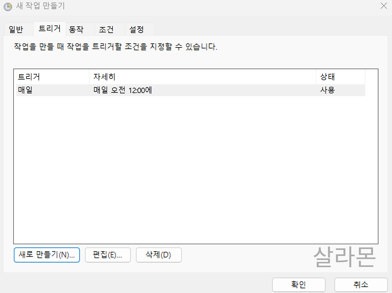 - 새로 만들기를 클릭 후, 본인이 만들고 싶은 주기마다 설정